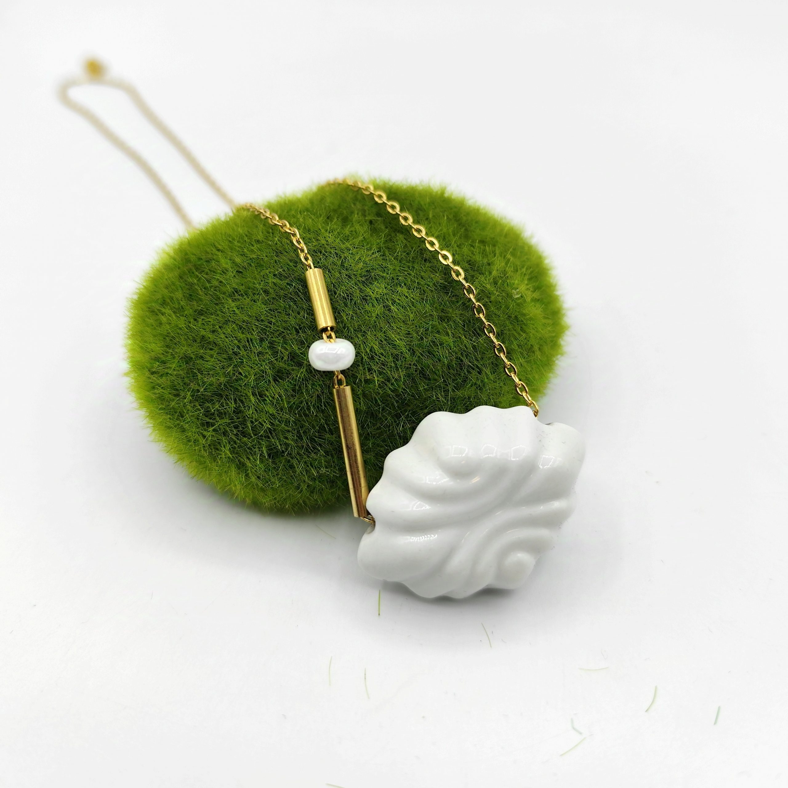 Porcelánový šperk na řetízku z chirurgické oceli ve zlaté úpravě