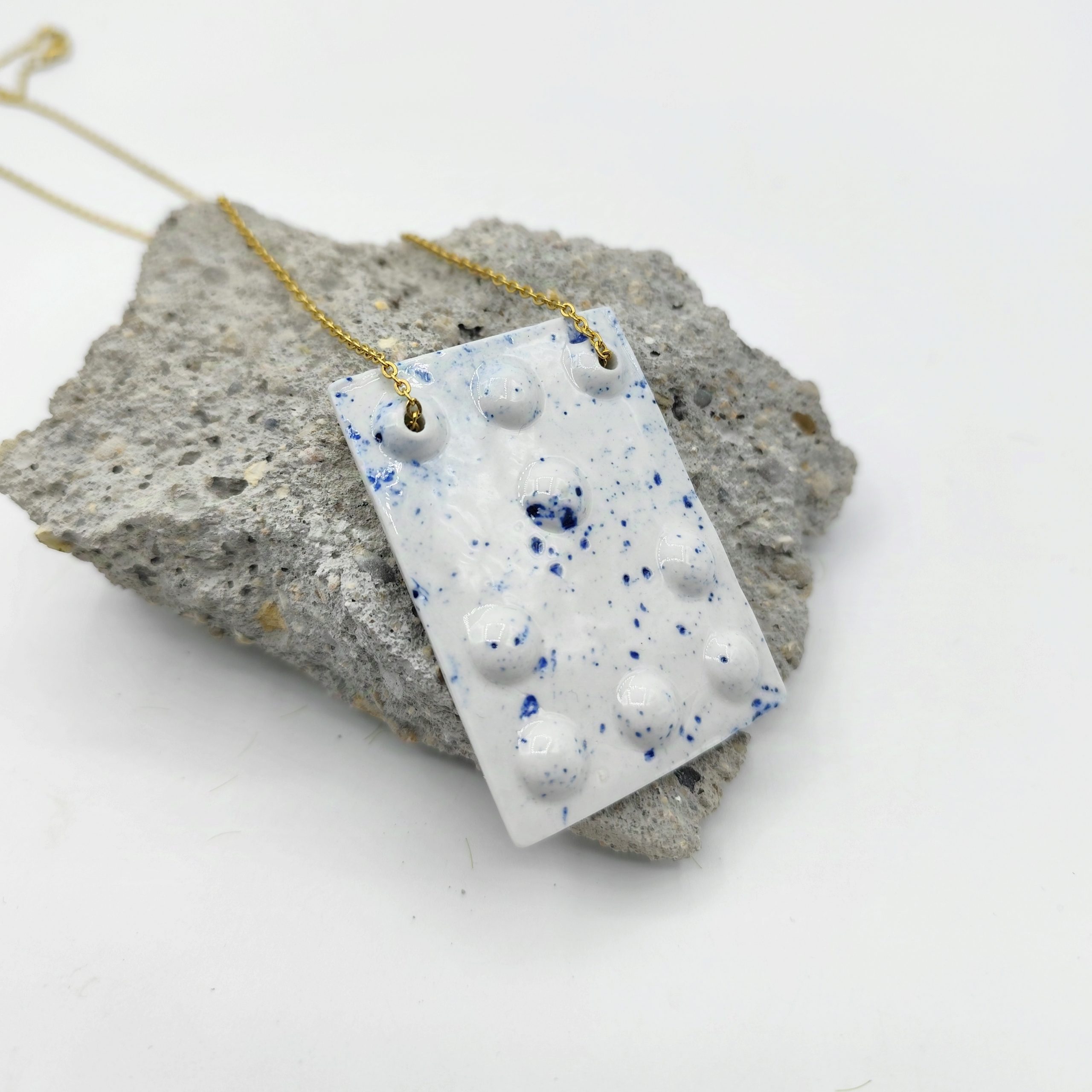 Porcelánový šperk na řetízku z chirurgické oceli.