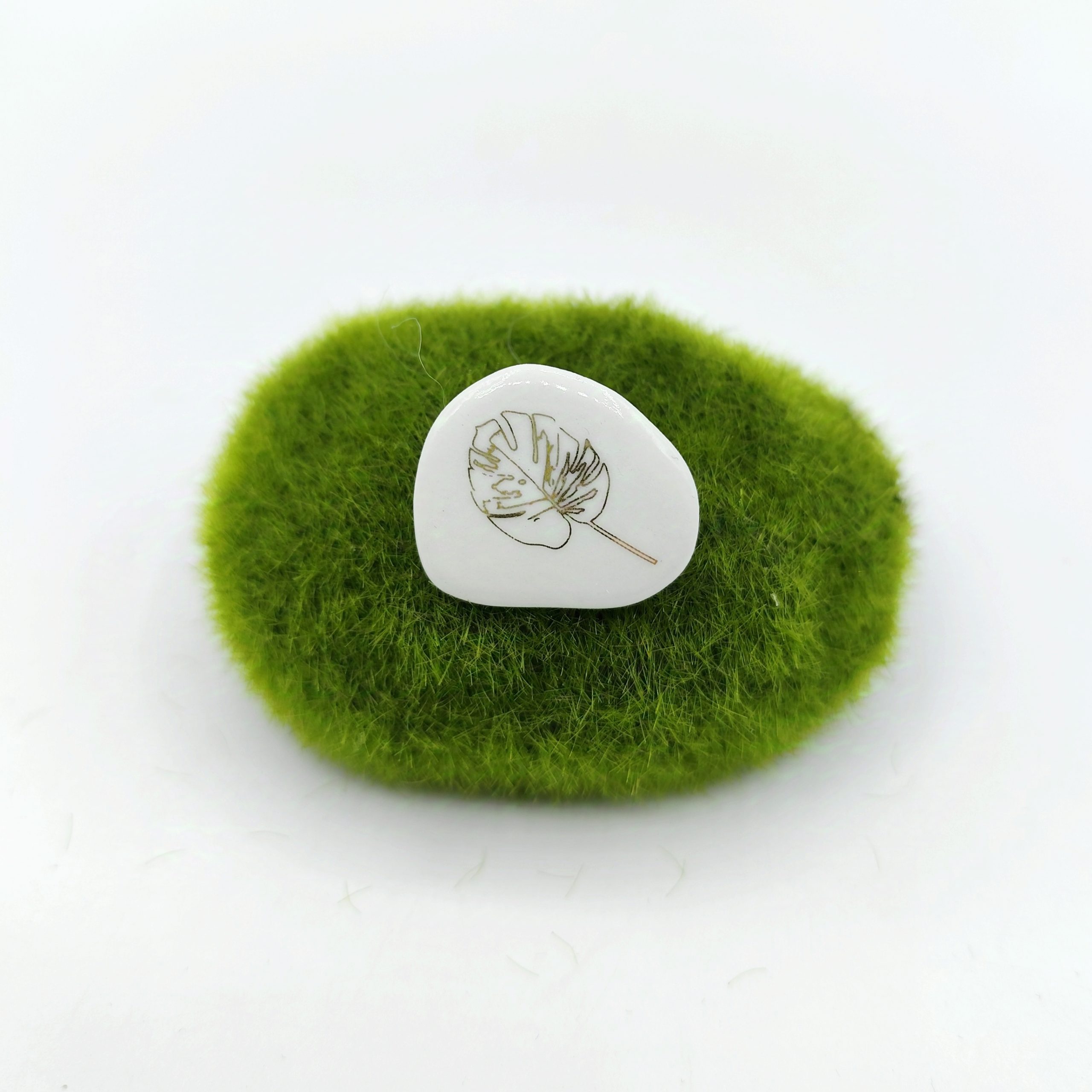 Porcelánová brož zdobená zlatem . Zapínání je z chirurgické oceli (brožový můstek z chirurgické oceli).
