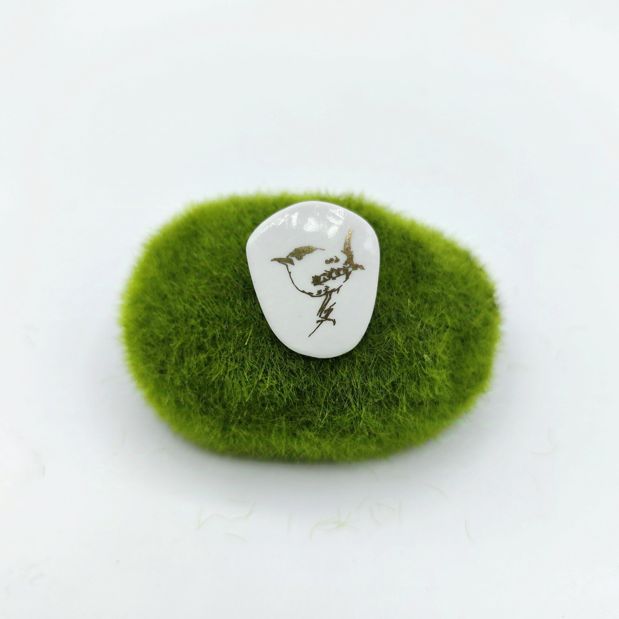 Porcelánová brož zdobená zlatem . Zapínání je z chirurgické oceli (brožový můstek z chirurgické oceli).
