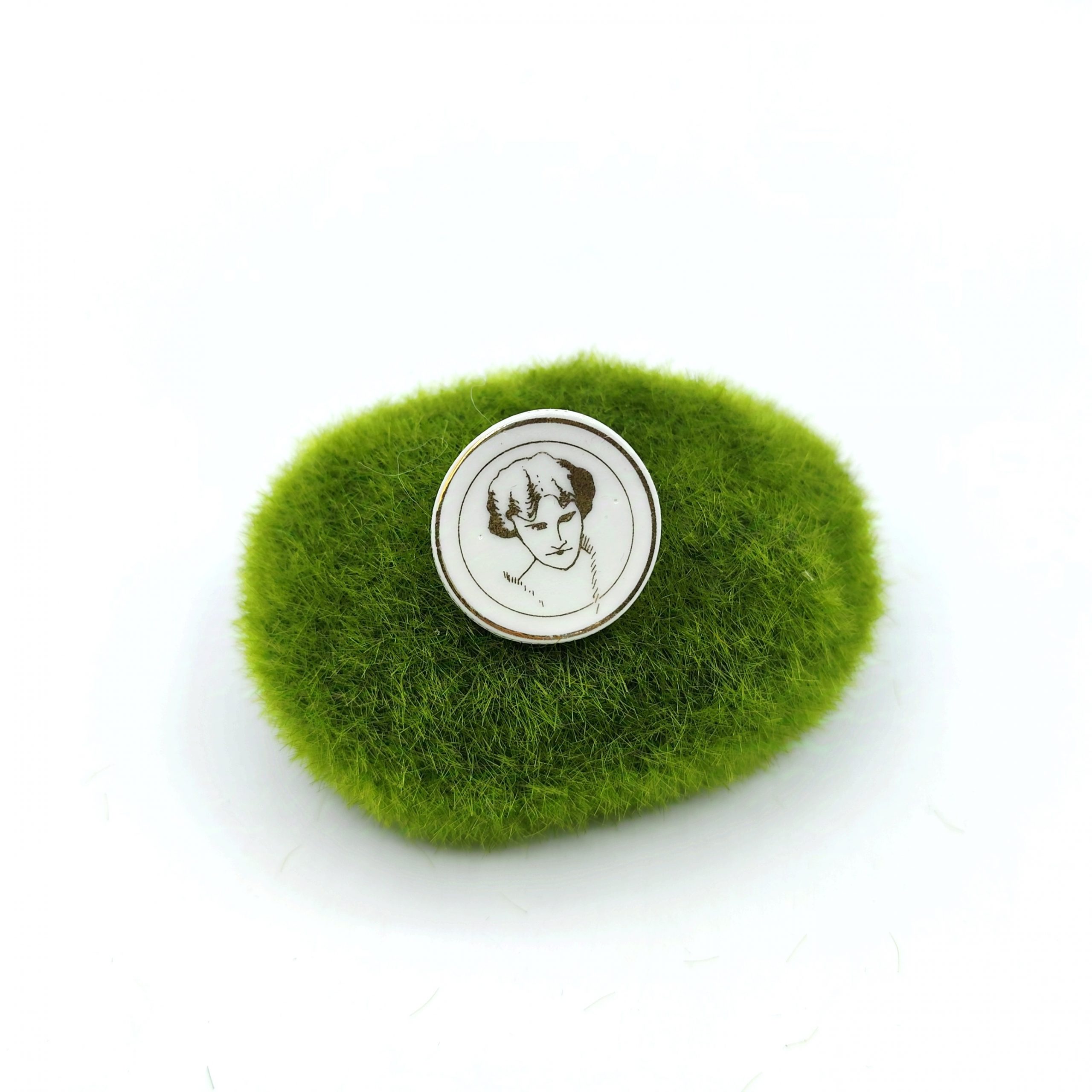 Porcelánová brož zdobená zlatem . Zapínání je z chirurgické oceli (brožový můstek z chirurgické oceli).